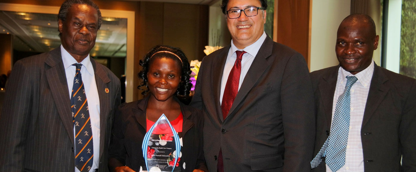 ACHEST’s Prof. Francis Omaswa, Ms. Damalie Inhensiko, Dr. Ariel Pablos-Mendes, Dep. Director USAID Washington and Dr. Haruna Lule at the WHA in Geneva