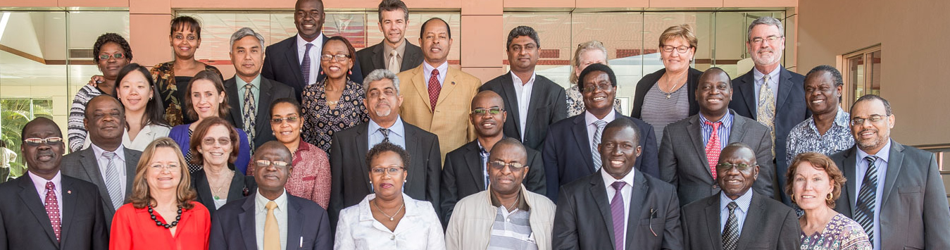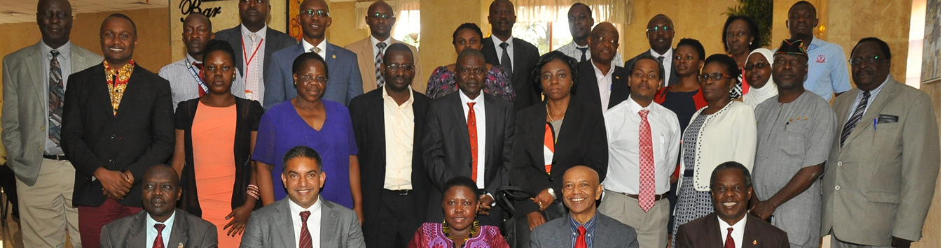 Stakeholders pause for a photo during the WHO-EU Brian Drain to Brain Gain, Health Workforce Migration Symposium organized by ACHEST in Kampala.
